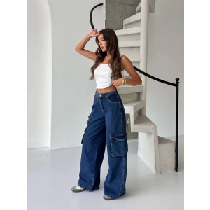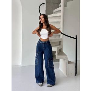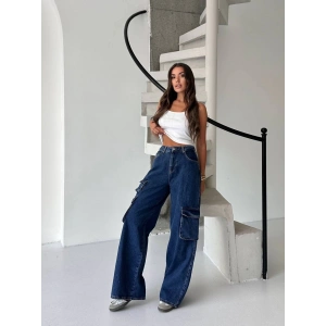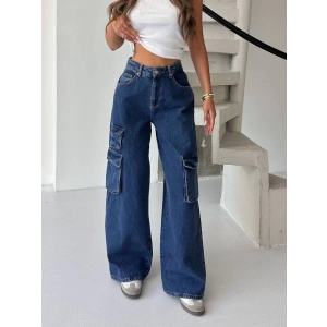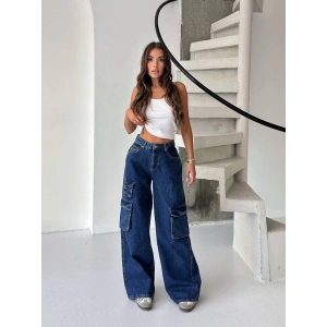 Lacivert Kargo Cep Balon Jean Pantolon