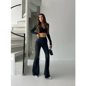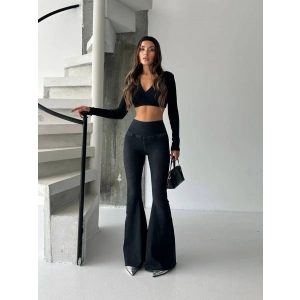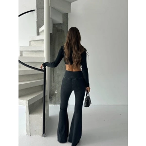 Siyah İspanyol Paça Yüksek Bel Jean Tayt