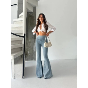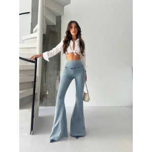 Buz Mavi İspanyol Paça Yüksek Bel Jean Tayt