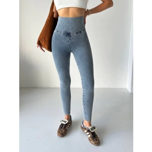 Buz Mavi Yüksel Bel İnceltici ve Sıkılaştırıcı Likralı Kot Tayt