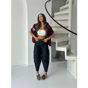 Lacivert Kargo Cep Oversize Kot Pantolon