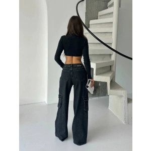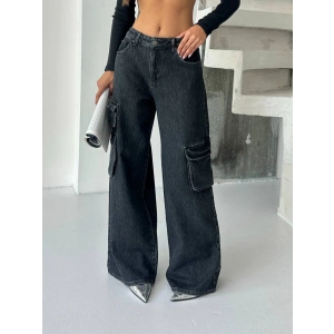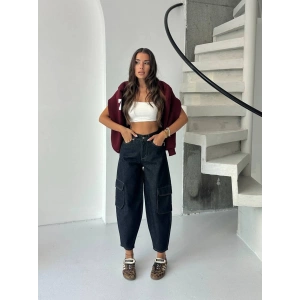 Siyah Kargo Cep Oversize Kot Pantolon
