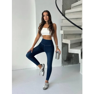 Mavi Yüksel Bel İnceltici ve Sıkılaştırıcı Likralı Kot Tayt