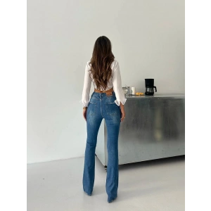Mavi İspanyol Paça Yüksek Bel Jean Tayt