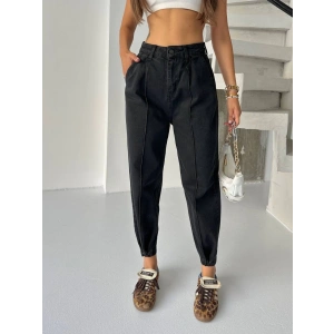 Siyah Çıt Çıt Paça Detay Balon Jean Pantolon