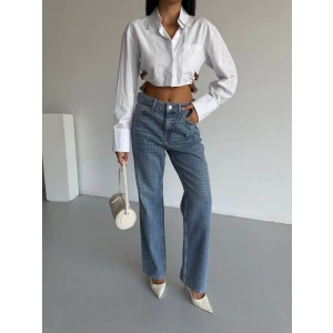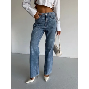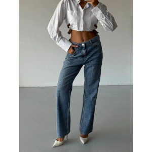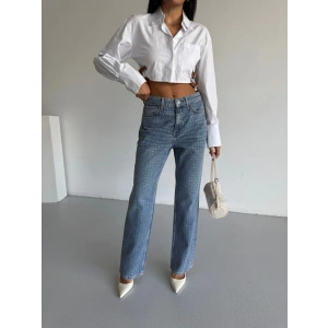 Mavi ZR Taşlı Boyfit Jean Pantolon
