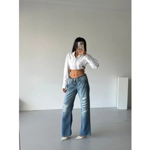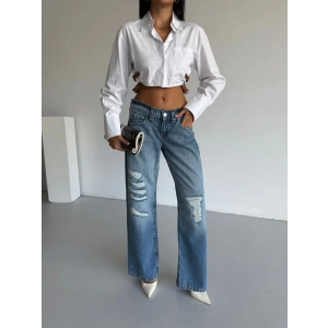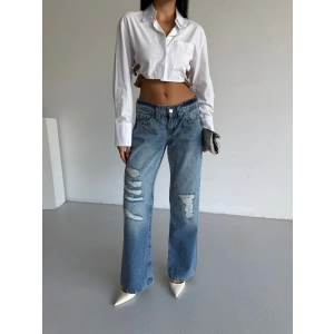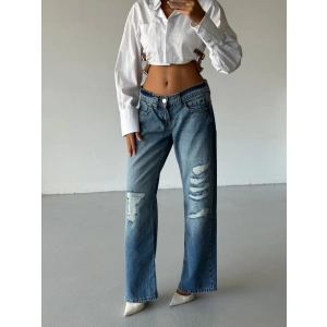 Mavi ZR Yırtık Baggy Jean Pantolon