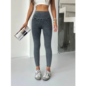 Antrasit Yüksel Bel İnceltici ve Sıkılaştırıcı Likralı Kot Tayt