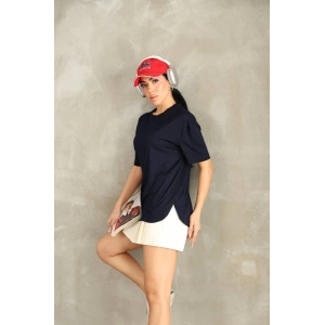 Lacivert Oysho Yırtmaçlı Modal Oversize Tshirt