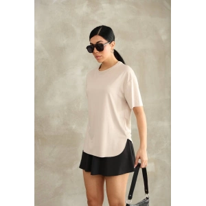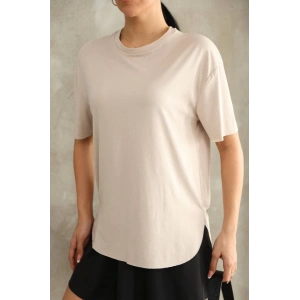 Bej Oysho Yırtmaçlı Modal Oversize Tshirt