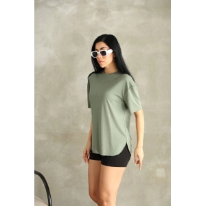 Haki Oysho Yırtmaçlı Modal Oversize Tshirt