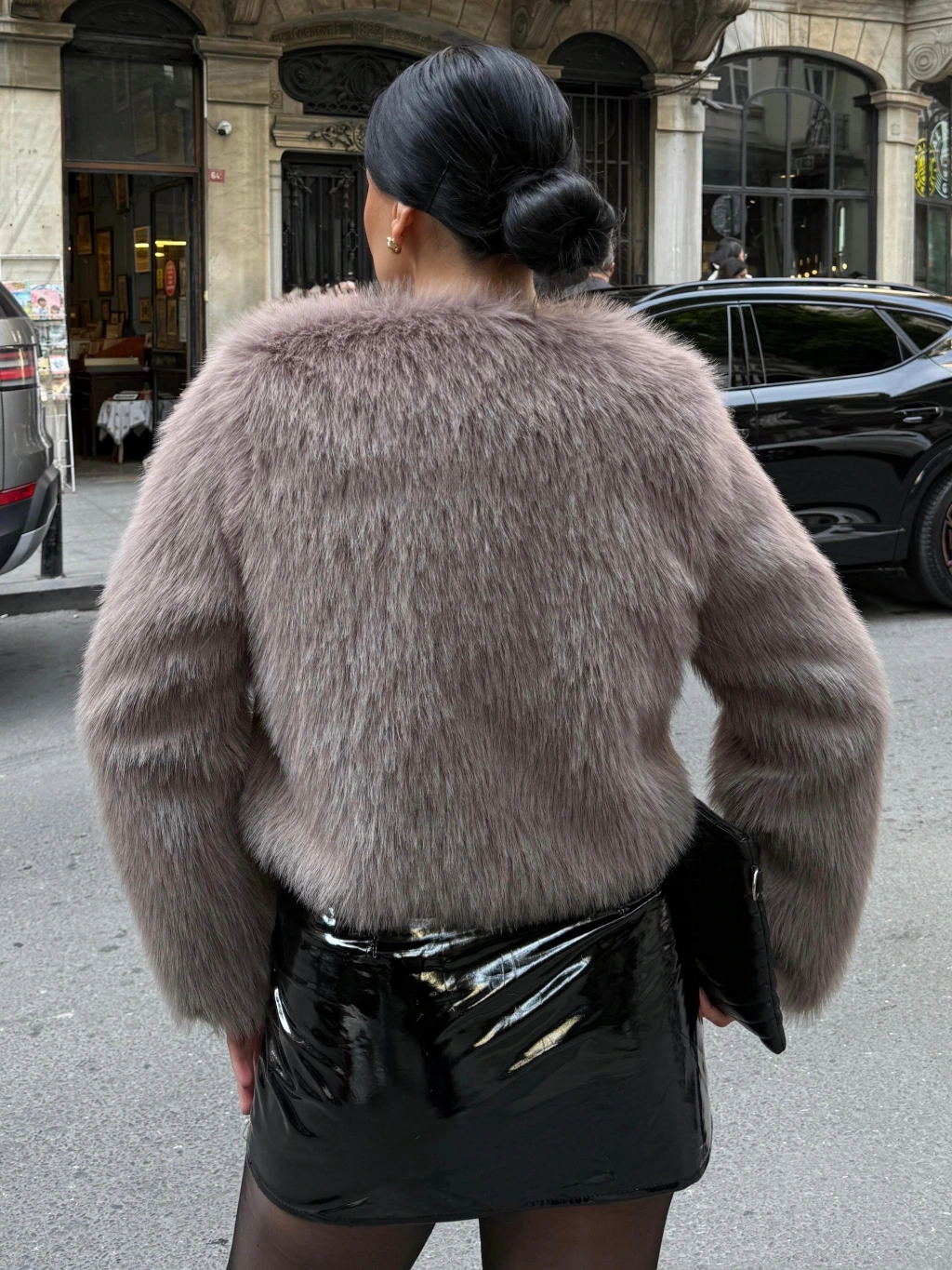 Siyah Çift Taraflı Giyilebilir Kürklü Mont