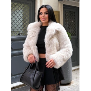 Modaskop Gri Leopar Düz Yaka Crop İthal Kürk ile stilinizi tamamlayın.
